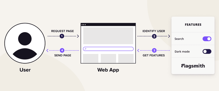 - A certain side of your app (FE/BE) makes a call to Flagsmith service with user uuid