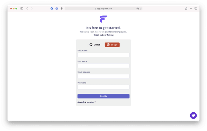 Then create an account in the cloud version of Flagsmith.
